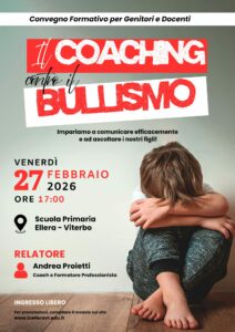Incontro rivolto a genitori e docenti del nostro Istituto dedicato alla prevenzione del bullismo e del disagio giovanile attraverso strumenti del coaching. Il formatore professionista e coach Andrea Proietti fornirà strumenti pratici di assertività e gestione dei bisogni emotivi, per imparare a comunicare con i ragazzi e ascoltarli in modo efficace.